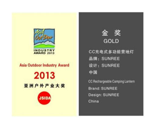 CC充电式多功能营地灯成为2013年度亚洲户外产业大奖双料冠军——“金奖”+“中国原创设计奖”